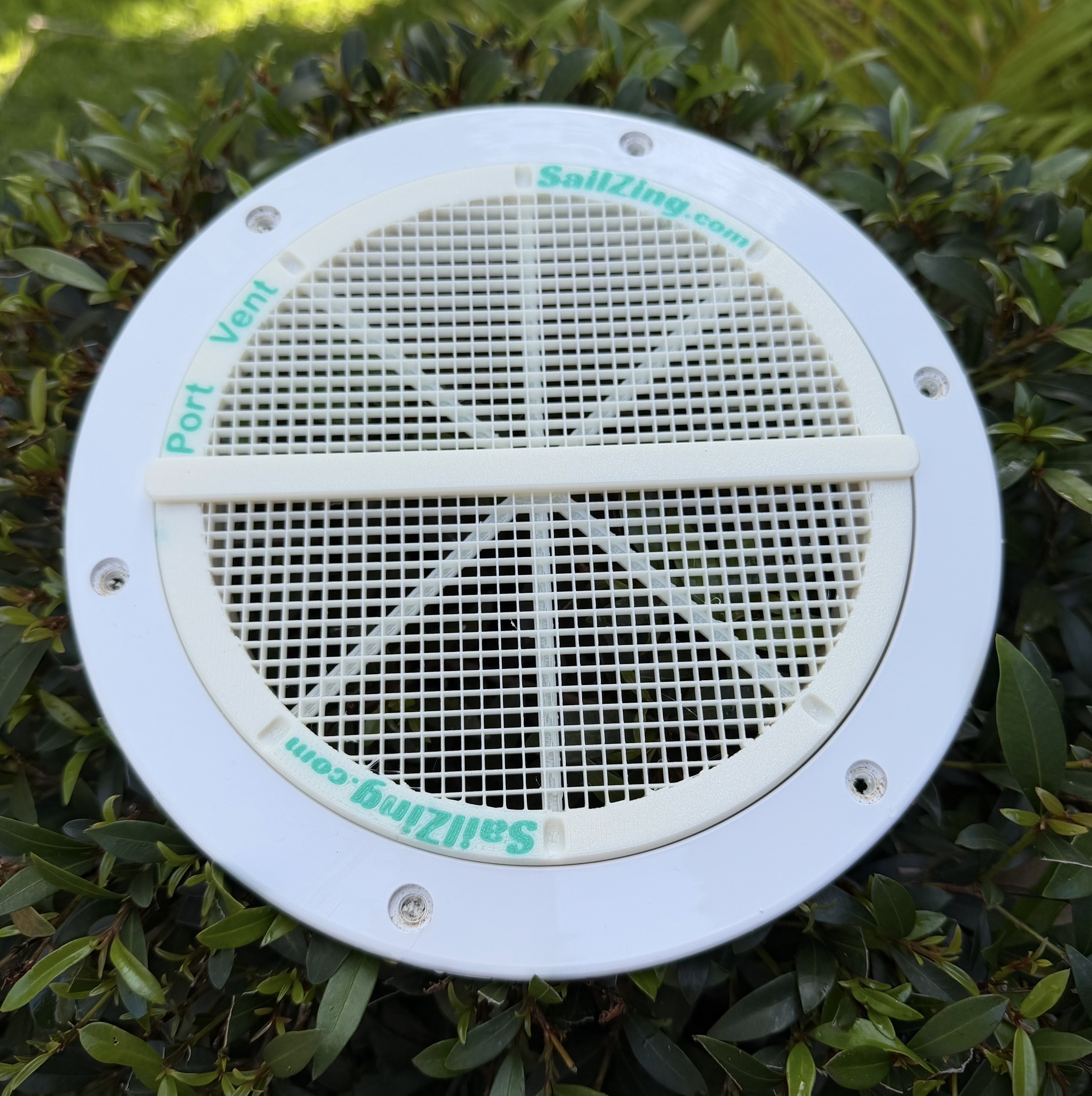 This Vented Port Cover insert temporarily replaces your Melges 15 Port Cover with a vented cover that enables drying of your hull interior while making it harder for rodents to enter your hull and do their thing. This was designed by SailZing.com for the Melges 15 ports and is used while storing the boat with a boat cover on. It’s a vent, so it will not seal your hull. This listing is for one vent. Either swap sides as needed or buy two.