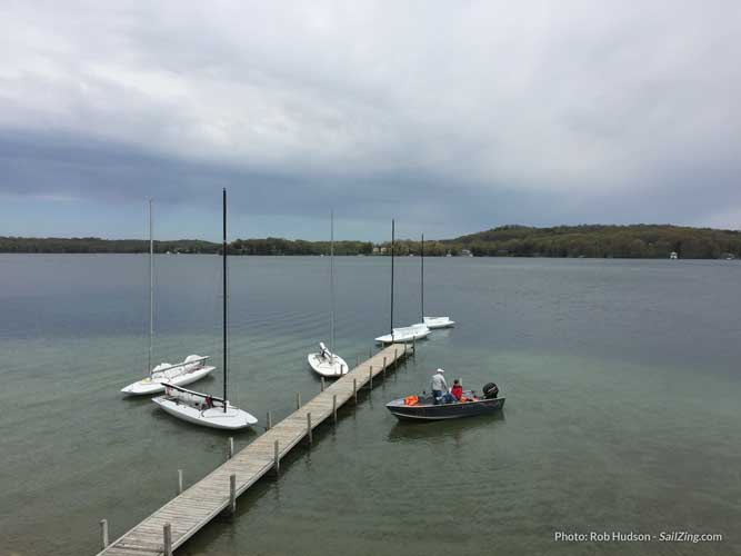 The 2017 Cedar Lake Yacht Club Pre-Season Prep regatta was a great opportunity for honing sailing skills and seeing scow sailor friends from the C-Scow and MC-Scow fleets. Held on Big Cedar Lake, WI, The regatta started with a free clinic by Andy Burdick from Melges Performance Sailboats on Friday afternoon. The rest of the regatta provided lots of starts with numerous short races. This gave plenty of chances to shed “rust” and try multiple approaches to the wind and competition. Lake Country Aerial Photography’s Jack Behrend was there taking drone videos, so we’re looking forward to reviewing some clips for learning.